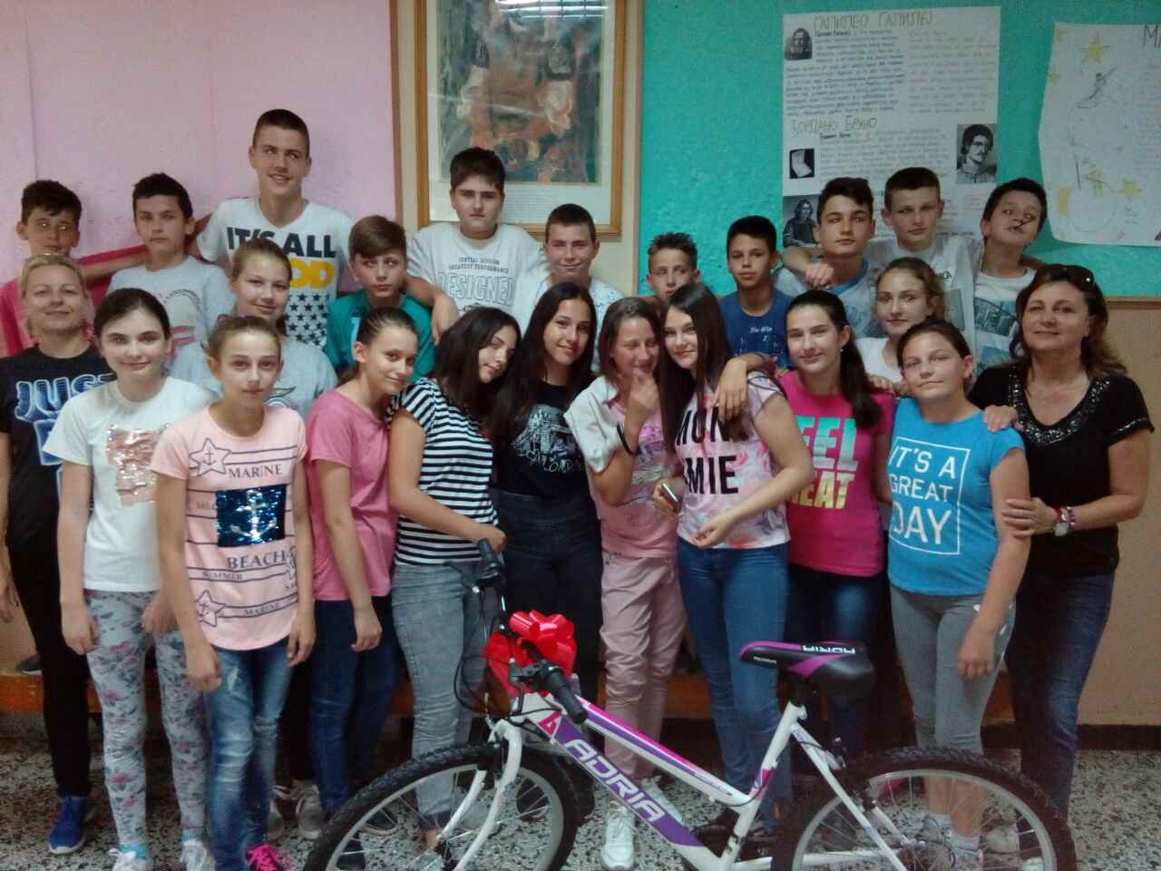 Настасија Кајфеш је на Републичком такмичењу из атлетике освојила прво место у скоку у даљ. Тим успехом је обрадовала све у нашој школи, а њени другари су припремили изненађење за њу. Ученици 6-3 разреда са одељенским старешином Љиљаном Ерић, дирктором Слободаном Егеља, наставницом Катарином Шимуновић и свим осталим наставницама и наставницима поклонили су Настасији бицикл!