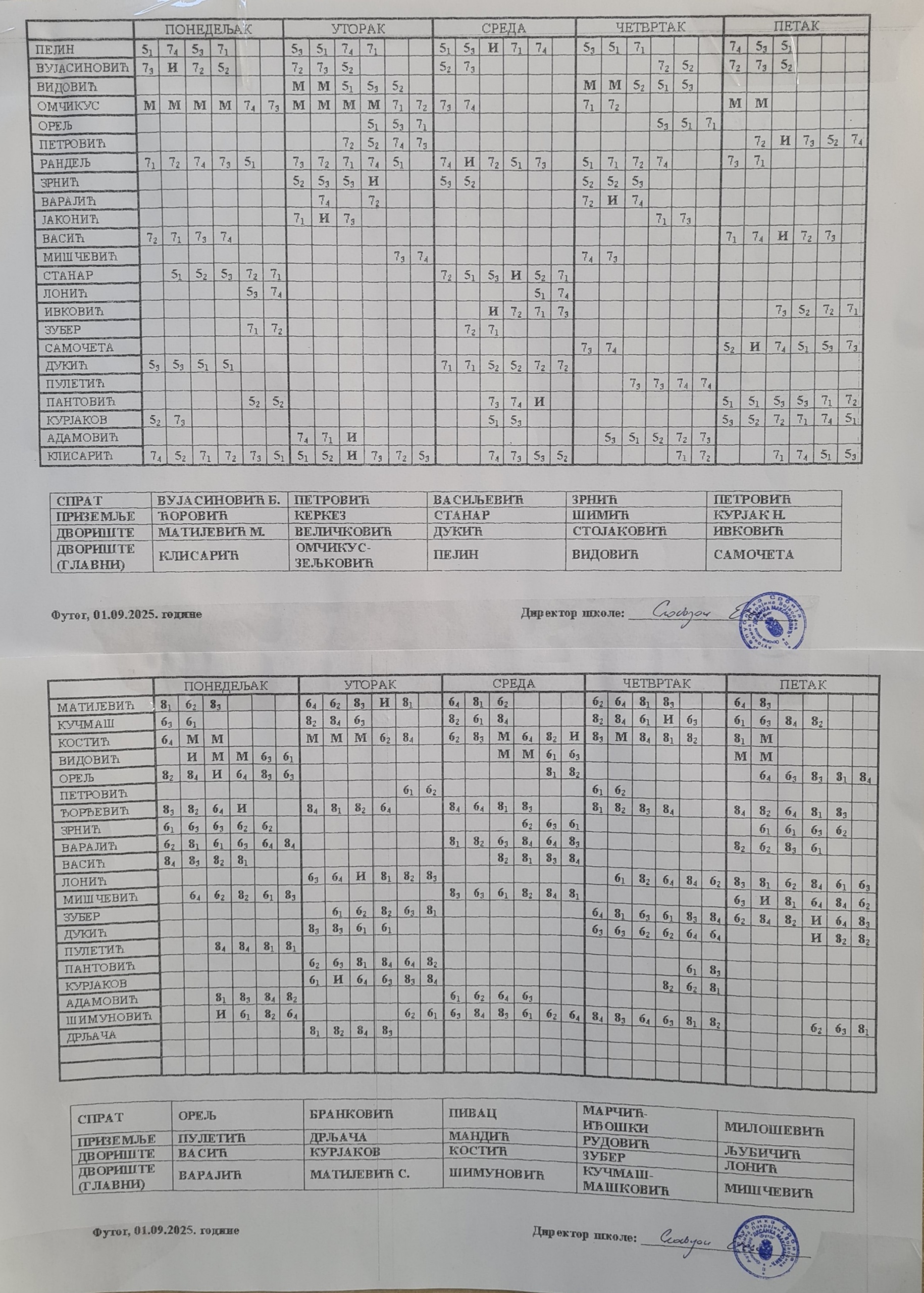 Распоред часова и дежурства наставника