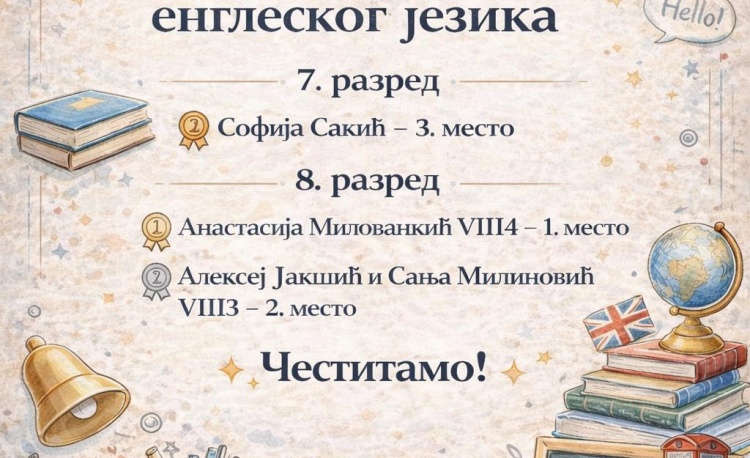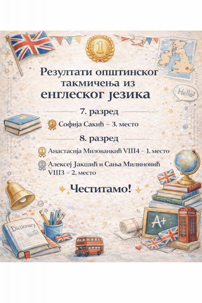 ОПШТИНСКО ТАКМИЧЕЊЕ ИЗ ЕНГЛЕСКОГ ЈЕЗИКА