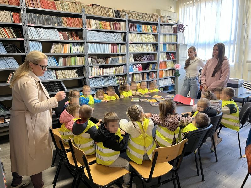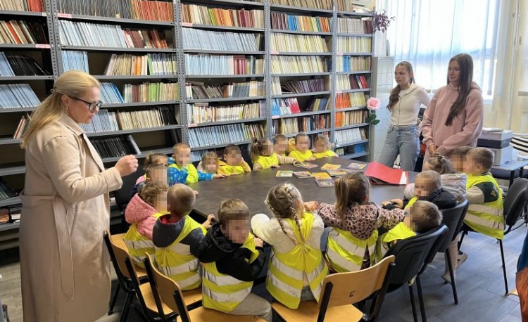 Малишани из вртића „Црвенкапа“ посетили су школску библиотеку и научили како се правилно поступа с књигама — како се пажљиво листају, читају и враћају на своје место.